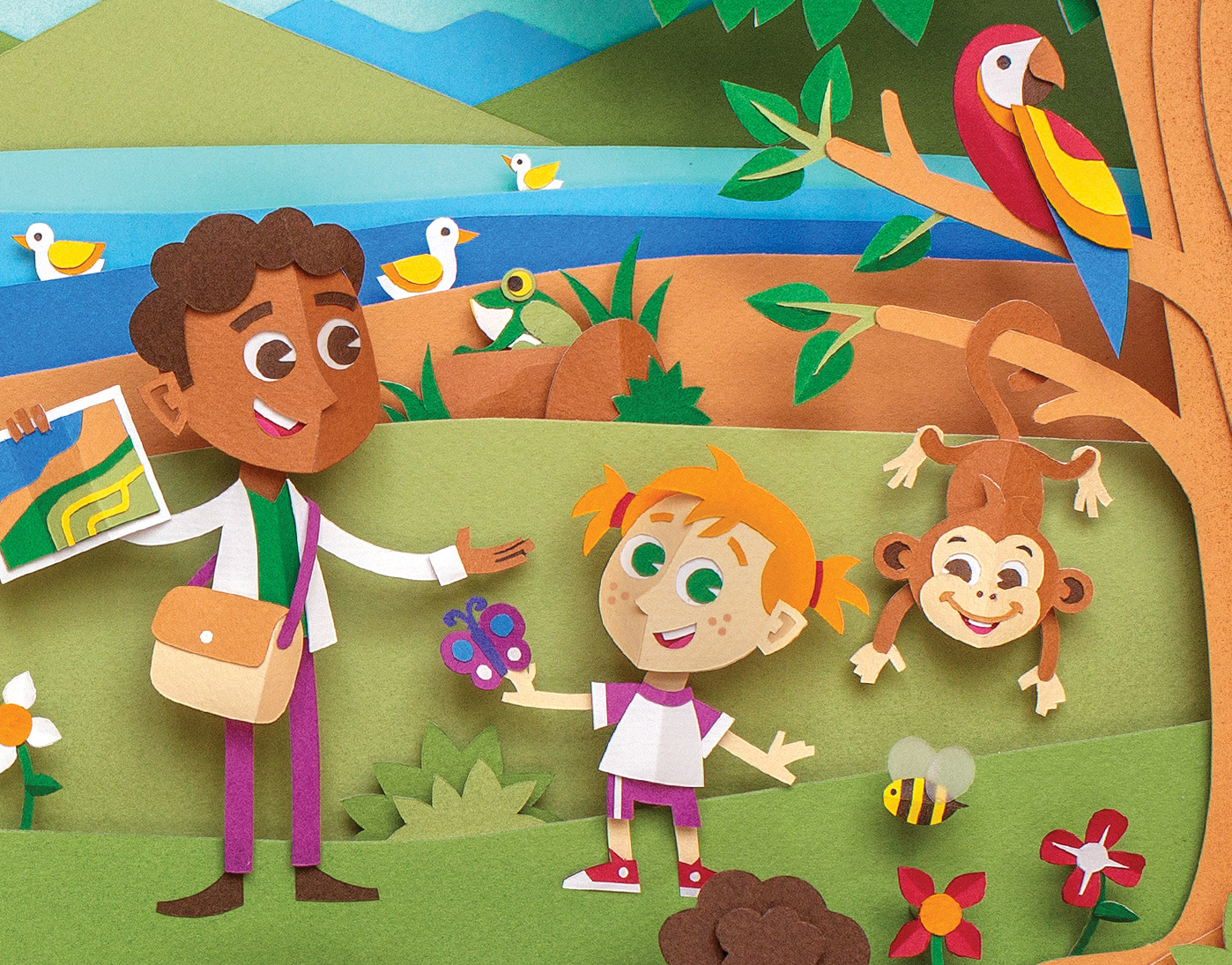 Papercraft illustrations for 2nd grade books of Anglo Education System. They are the covers of Portuguese, History & Geography; Maths & Science.